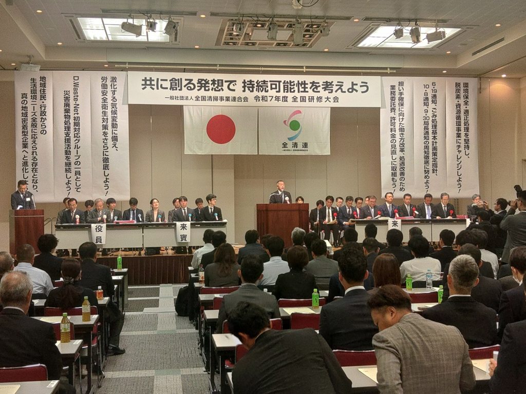 10月22日に開催された全国清掃事業連合会全国研修大会に、山川会長、本多副会長、斎藤廃棄物関連委員長、山川専務理事、福島県清掃事業協議会より岡会長ほか会員8名が参加した。